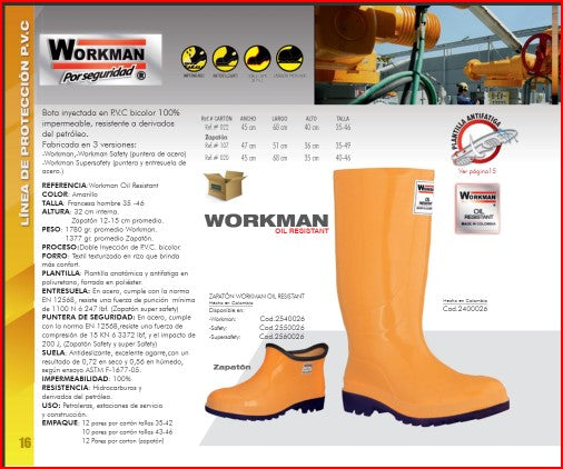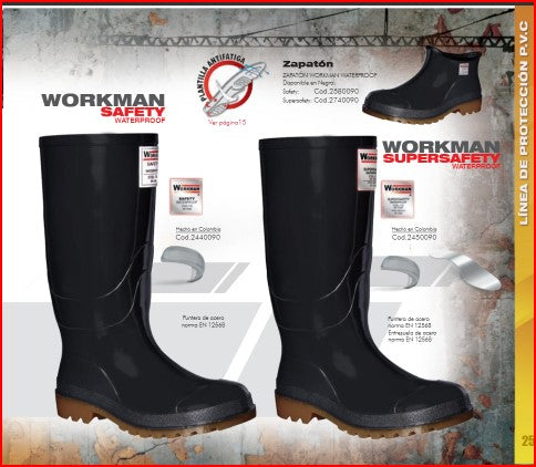 Precio habitual Desde $69.970,00 COPPrecio habitualPrecio unitario / porPrecio de oferta Desde $69.970,00 COPBota Industrial PVC Workman Safety 2420026 Oil Resistant Puntera Acero. PRECIO SIN IVA