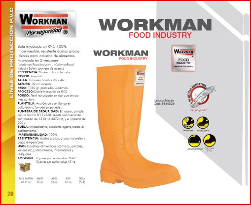 Bota Industrial PVC Workman Safety Food Industry 2420010 Puntera Acero. PRECIO SIN IVA