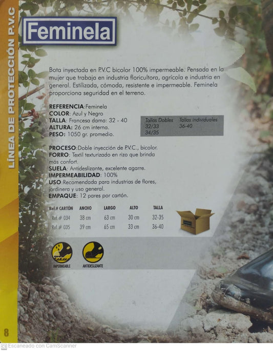 Bota Industrial PVC Feminela 5920060 Azul Sin Puntera. PRECIO SIN IVA