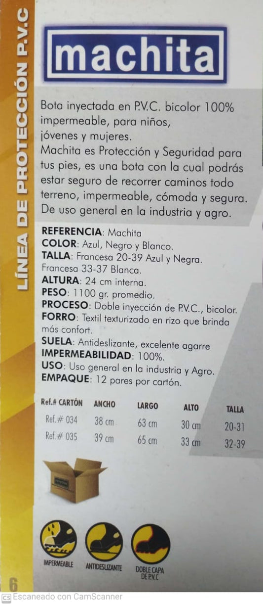 Precio habitual $46.200,00 COPPrecio habitualPrecio unitario / porPrecio de oferta $46.200,00 COPBota Industrial PVC Supermachita Blanca Mujer 5930010 Sin Puntera. PRECIO SIN IVA