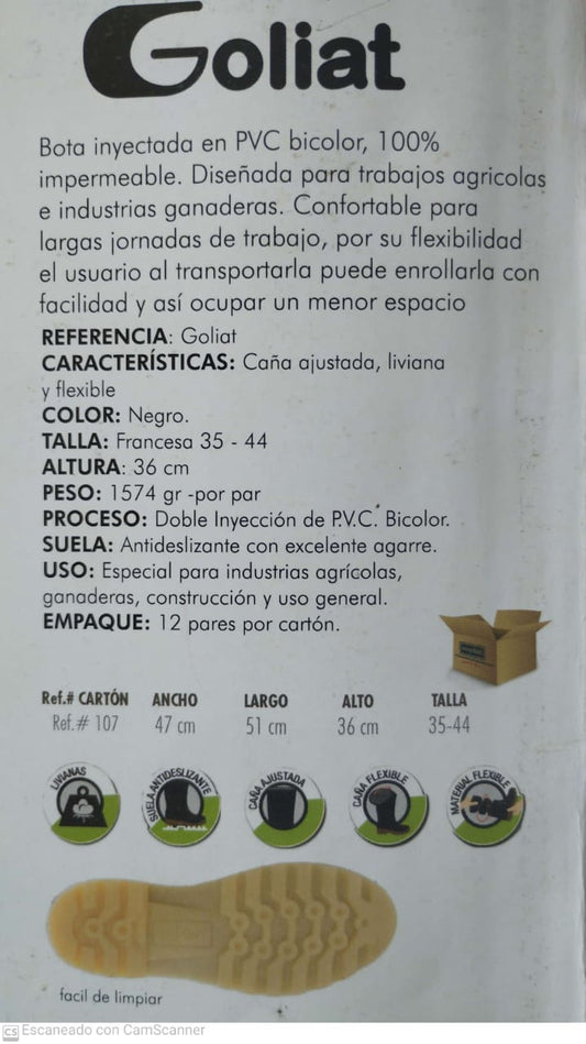 Bota Industrial PVC Safety Waterproof 2440090 Puntera de Acero Bota a prueba de agua. PRECIO SIN IVA