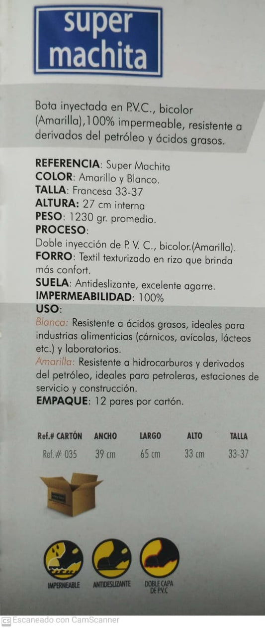 Precio habitual $46.200,00 COPPrecio habitualPrecio unitario / porPrecio de oferta $46.200,00 COPBota Industrial PVC Supermachita Blanca Mujer 5930010 Sin Puntera. PRECIO SIN IVA