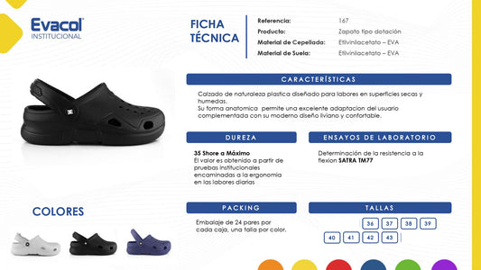 Precio habitual $45.680,00 COPPrecio habitualPrecio unitario / porPrecio de oferta $45.680,00 COPZapato Dotacion en EVA 0175-002-020 SuelaAntideslizante. PRECIO SIN IVA