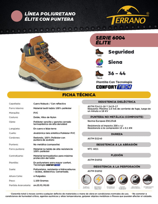 Bota Industrial Cuero 6004 Elite Seguridad con Puntera Composite Siena Reflectivo. PRECIO SIN IVA