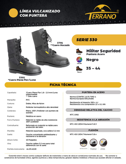 Bota Industrial Militar 3301 Seguridad Cuero Lona con Puntera de Acero. PRECIO SIN IVA